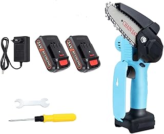 OrangeClub Elektrische Kettensäge, 2000Mah 4 Zoll Akku Säge Der batteriebetriebene Mini-Holzschneider Aller Zeiten wiederaufladbar (2 Akku, EU-Stecker, Blau)