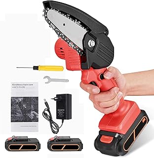 OrangeClub Elektrische Kettensäge, 4 Zoll Akku Säge Der batteriebetriebene Mini-Holzschneider Aller Zeiten wiederaufladbar (2 Akku, EU-Stecker)