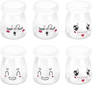 BESTonZON 6 Stück Joghurtgläser Joghurtbecher Marmeladengläser Einmachgläser Dessertgläser mit Deckel für Pudding Milch Joghurt Machen 100 ml (Zufälliges Muster)