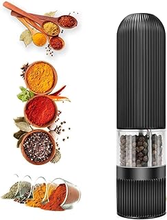 ROVE Pfeffermühle Elektrische Salz und Pfeffermühle Salzmühle Gewürzmühle Keramikmahlwerk Set mit Licht Einstellbare Feinheit (Schwarz 1er)