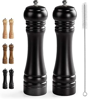 Virklyee® Holz Gewürzmühle Holzpfeffermühle 2PCS Holz mit Keramikmahlwerk Pfeffermühle Holz Peugeot Manuelle Salzmühle mit Einstellbarer Salz und Pfeffer 8Inch Salz und Pfeffermühle (Schwarz)