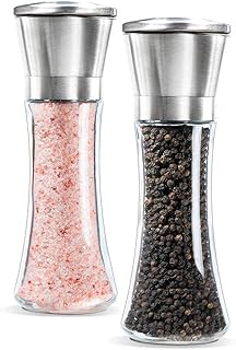 Miuly Salzmühle und Pfeffermühle Set mit Verstellbarem Keramikmahlwerk, Gewürzmühle aus Hochwertigem Edelstahl, Auch als Chilimühle, Salz- und Pfeffermühle (2 Stück)
