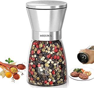 MEIJUBOL Salz und Pfeffermühle (5.5"x 2.5") Klein Pepper Grinder Mill mit Einstellbarer keramikmahlwerk und Edelstahl Salz Mühle Gewürzmühle für Gewürze Pfeffer Salz und Chili