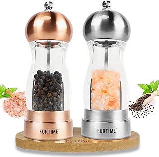 FURTIME Salz und Pfeffermühle, Gewürzmühle Keramikmahlwerk 2er-Set Salz und Pfeffer Mühle Salz Pfeffermühle für Küche BBQ mit Untersetzer