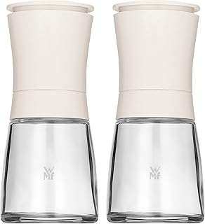 WMF Trend Mühlenset 2tlg, Salz- und Pfeffermühle unbefüllt, Glasbehälter, Keramikmahlwerk, Mühle für Salz, Pfeffer, Gewürze, weiß