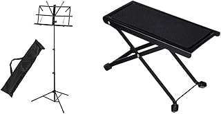 CASCHA Notenablage Notenständer mit Tasche Kinder und Erwachsene I Notenpult Metall I Notenhalter schwarz I Notenständer klappbar stabil & Adam Hall Stands SGS017 Gitarrenfußbank