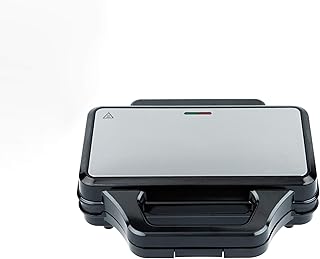 Zoomyo XXL Sandwichtoaster, mit Antihaft beschichteten Platten in Muschelform, einfache Bedienung mit Temperaturkontrollleuchte, 900 Watt Leistung, Farbe: schwarz-silber (Schwarz-Silber)