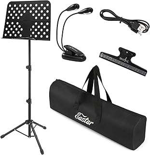 Eastar Notenständer Klappbar Stabil EMS-1 Notenpult Notenständer Schwarz Metall mit Tasche
