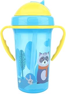 Kinder Trinkbecher, 300 ml, Infantile Trinkbecher, Strohhalm, rutschfest, wasserdicht, Trinkbecher, Doppelgriff, Lerntasse für Kinder (blau)