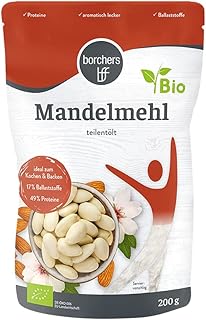 borchers Bio Premium Mandelmehl | Teilentölt, zum Kochen, Backen und für Süßspeisen | Hoher Proteingehalt | Hoher Ballaststoffgehalt | 200 g