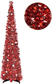 Lucoss künstlicher Weihnachtsbaum 1.5M, Xmas Faltbarer Weihnachtsbaum Deko -Pailletten-Lametta-Bleistift Künstlicher Weihnachtsbaum mit Ständer für Zuhause, Wohnung, Weihnachtsdekoration(Red)