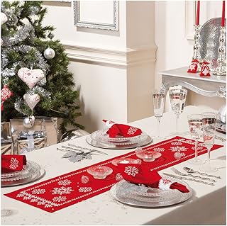 Stickpackung WEIHNACHTSKUGELN, komplettes vorgezeichnetes Kreuzstich Tischdecken Set, Winter Tischläufer Stickset mit Stickvorlage zum Selbersticken, Sticken zur Adventszeit und Weihnachten