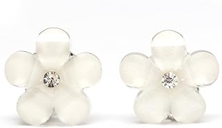 Kinder Ohrclips - Weiße Blumen mit Strass (Größe: ca. 16 x 16 mm)
