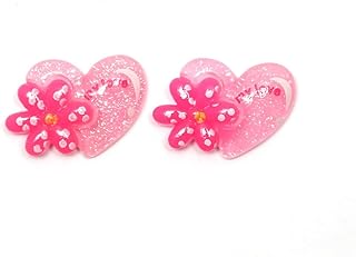 Ohrclips - Rosa Herzen mit Blumen Ohrclips (ca. 19 x 15 mm)