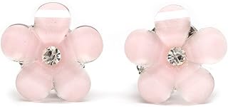 Kinder Ohrclips - Hellrosa Blumen mit Strass (Größe: ca. 16 x 16 mm)