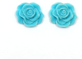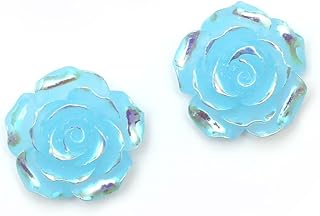 Ohrclips - Blaue, glänzende Rosen in AB-Farbe (Regenbogeneffekt) (ca. 18 x 18 mm)
