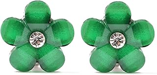 Ohrclips - Dunkelgrüne Blumen mit Kristalleffekt und Strass (ca. 17 x 17 mm)