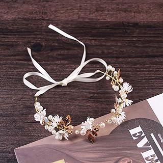 Wohlstand Blumenstirnband Braut Blumenkranz mit Künstliche Blättern,Vintage Haar Kamm Rebe Stirnbänder Strass Blumen und Perle Strass Blumen Stirnband Haarband für Damen Mädchen(Golden)