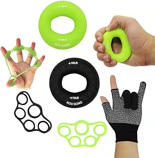 Handgriff, Fingertrainer, Griffstärken-Trainer (4 Stück) + rutschfester Strickhandschuh (1 Stück), Fingerstrecker, perfekt für Sport, Unterarm-Griff-Workout