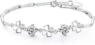 Silber Schmuck Set für Damen, 925 Sterling Silber Schmuckset, Liebe Herz Halskette Anhänger und Klee Ohrringe Armband Set, mit Weiß Zirkonia, Elegant Geschenk für Mutter Frau Freundin