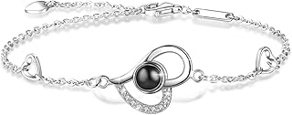 Damen Armband mit Herz Love Memories Zirkonia Projektion in 100 Sprachen Ich Liebe Dich 925 Sterling Silber Armband Damen und Mädchen