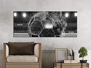 Leinwandbilder 1Tlg 100x40cm schwarz weiß Fussball in Flammen Fußball Feuer Leinwandbild Kunstdruck Wand Bilder Vlies Wandbild Leinwand Bild Druck 9Z1867, Leinwandbild Größe:100x40cm
