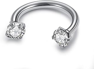 1x 1.2mm 316L Edelstahl Zirkonia Ohrstecker Helix Tragus Lippe Nase Septum Augenbrauen Brust Ring Hufeisen Circular Barbell Piercing Unisex, Silber