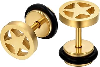 Schmuck Fake Plug Ohrstecker Edelstahl Strass Stern Pentagramm Fakeplug Tunnel Ohrringe Ohr-Piercing für Herren Damen Silber/Gold/Schwarz