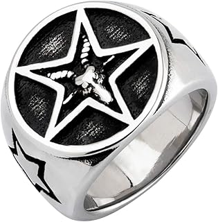 Vintage Schwarz Titan Edelstahl Lucifer Morgen Stern Pentagramm Pentacle Ring für Herren Damen Größe 54-67