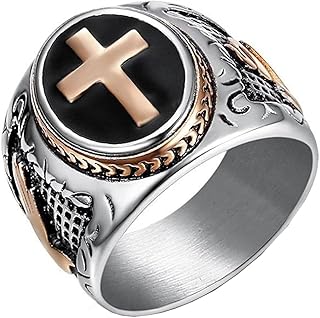 Herren-Ring Rosenkranz-Ring Herrenring, Edelstahl Ring Edelstahlring Bandring Schwarz Silber Gold Daumenring Herrenringe Siegel Kreuz Kruzifix Jesus Männer Herren-Accessoires
