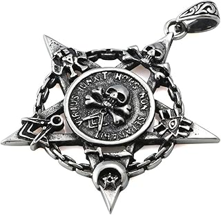 Herren Pentagramm Halskette Edelstahl Pentacle-Stern mit Schadel Freimaurer Bose Auge Muster