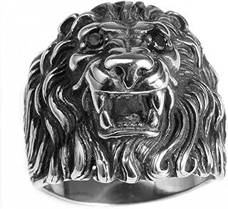 Schmuck Herren Ring,Edelstahl,Löwenkopf mit Auge Stein,Silber Schwarz