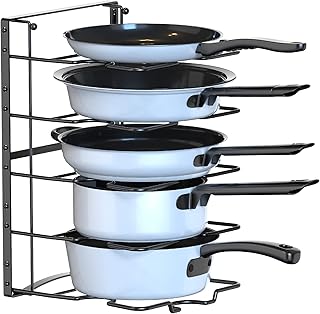 Masthome Pfannenhalter Verstellbar,Topfregal mit 8 Verstellbare Fächer,Pfannen Regal für Küche, Topf-Organizer für Töpfe und Pfannen-Hergeben 1 Reinigungstücher