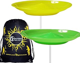 Flames 'N Games 2X Jonglierteller Set mit 2 Stäbe und Reisetasche! Jonglier Spaß für Kinder & Erwachsenen (Gelb/Grün)