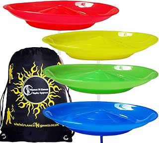 Flames 'N Games 4X Jonglierteller Set mit 4 Stäbe und Reisetasche! Jonglier Spaß für Kinder & Erwachsenen (Rot/Gelb/Grün/Blau)