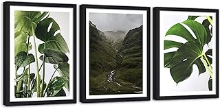 Feeby 3er Poster Set mit schwarzem Rahmen Gerahmt Posterset Plakat Print Wanddekoration Bilder Wohnung Bilderrahmen Monstera Exotische Pflanzen Grün