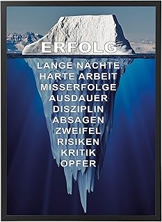 PICSonPAPER Motivations-Poster 50 cm x 70 cm, Eisberg des Erfolgs mit schwarzem Bilderrahmen, Poster mit Rahmen (50 cm x 70 cm)
