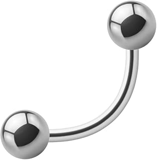 | 1,2 mm TITAN Piercing BANANE - 6 Größen - Silber Titanium - Bauchnabelpiercing, Augenbraue, Helix, Septum, Tragus, Lippe, Nippel, Ohr, Nase, Ohr Schmuck Curved Barbell KUGELN zum Schrauben