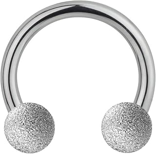| Silbernes Piercing HUFEISEN in DIAMANT-OPTIK aus Chirurgenstahl - 10 Größen - sandgestrahlte Kugeln zum Schrauben - matt SILBER - Septum Helix Tragus Nase Brust Ohr Intim usw - CBR Barbell