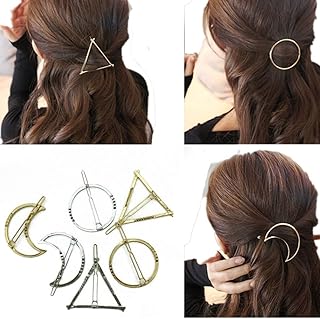 Zhichengbosi – 7 minimalistische, elegante, Haarspangen, Gold, Silber, Geometrische Formen, Metall-Haarspange, Kreis, Dreieck und Mond etc. gold