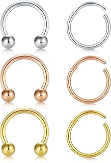 6stk Nasenring Nasenpiercing Fake Nase Lippe Ring Set 8mm/10mm Chirurgenstahl Piercing Nasen Schmuck,Piercing Nase Septum Ohr Helix Tragus für Nase Lippe Brust Intim Scharnier Clicker Ring
