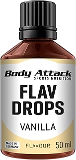 Body Attack Flav Drops®, 50 ml, Vanille, Aromatropfen für Lebensmittel, zuckerfreie Flavour Drops ohne Kalorien, vegan & Qualität Made in Germany