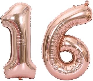 Juland Luftballons 16. Geburtstag XXL Riesen Folienballon Luftballon Zahl 16 Rose Gold Nummer Ballons Große Folienmylar-Ballons 40-Zoll-Riesen-Jumbo-Zahl-Ballons zum 16. Geburtstag Partydekorationen