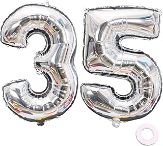 Juland Luftballons 35. Geburtstag XXL Riesen Folienballon Luftballon Zahl 35 53 Silber Nummer Ballons Große Folienmylar-Ballons 40-Zoll-Riesen-Jumbo-Zahl-Ballons zum 35. Geburtstag Partydekorationen