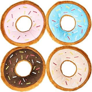 Yinuoday Hund Squeak Spielzeug 4Pcs Donuts Form Squeaker Hund Kauen Spielzeug für Hunde Von Alle Größen Und Leben Stufen Welpen Spielzeug für Kleine Mittelgroße Hunde