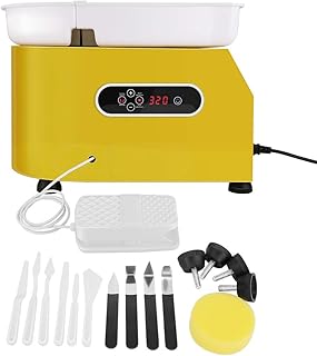 Kacsoo Elektrische Töpferscheibe Maschine 25CM 350W LED-Anzeige Keramik Clay Maschine Töpferscheibe Formmaschine mit Unabhängigem Pedal und Abnehmbare Waschbecken und Ton Tool Kit (Gelb)