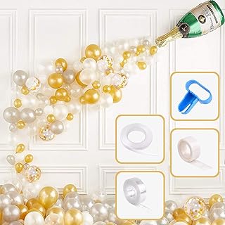 Ballon Girlande Ballonbogen Kit 5m Lange 65Stück Gold&Weiß Luftballons und Konfetti Luftballons Set mit Champagner, Party Luftballons Garland Arch für Mädchen Kinder Geburtstag Party Hintergrund Deko