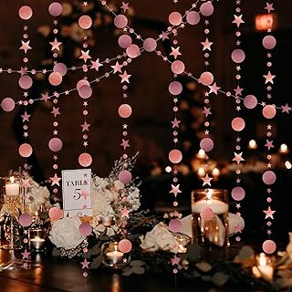 LAMEK 5 Pcs 4M Glitzer Kreis Punkte Girlande Rose Gold Runde und Stern Papier Glitzergirlande Hängend Banner Deko Party Dekoration zum Aufhängen für Geburtstag Hochzeiten Weihnachten Schulanfang