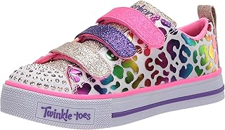 Skechers Unisex-Child Twinkle Sparks Sneaker. 135 ratings. Price: $30.00 - $66.99 Free Returns on some sizes and colors. Special Size: Little Kid (4-8 Years) Size: Select. Color: Lavender/Multi. Join for Free Shipping & Earn a $5 Reward. Light up your style with hearts and rainbows with the Skechers Twinkle Toes®: Twinkle Sparks - Magic-Tastic. This sparkly hi-top light-up sneaker features a synthetic iridescent heart print upper and a hook and loop strap.