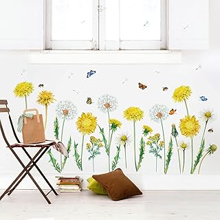decalmile Wandtattoo Pusteblume Wandsticker Chrysanthemen Gelb Blumen Wandaufkleber Wohnzimmer Schlafzimmer Küche Wanddeko